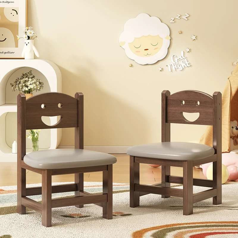 笑顔の背もたれ付きミニ椅子|リビングにぴったりな木製スツール|幼稚園でも使える柔らかクッション付き|お子様の靴を履くのに最適な低めのベンチ|かわいらしいデザインで楽しい空間を演出!