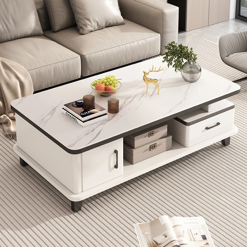Stylish Tempered Glass Coffee Table Set for Living Room - Modern Minimalist Design with Luxurious Stone Top, Perfect for Small Spaces and Ideal for TV Cabinets