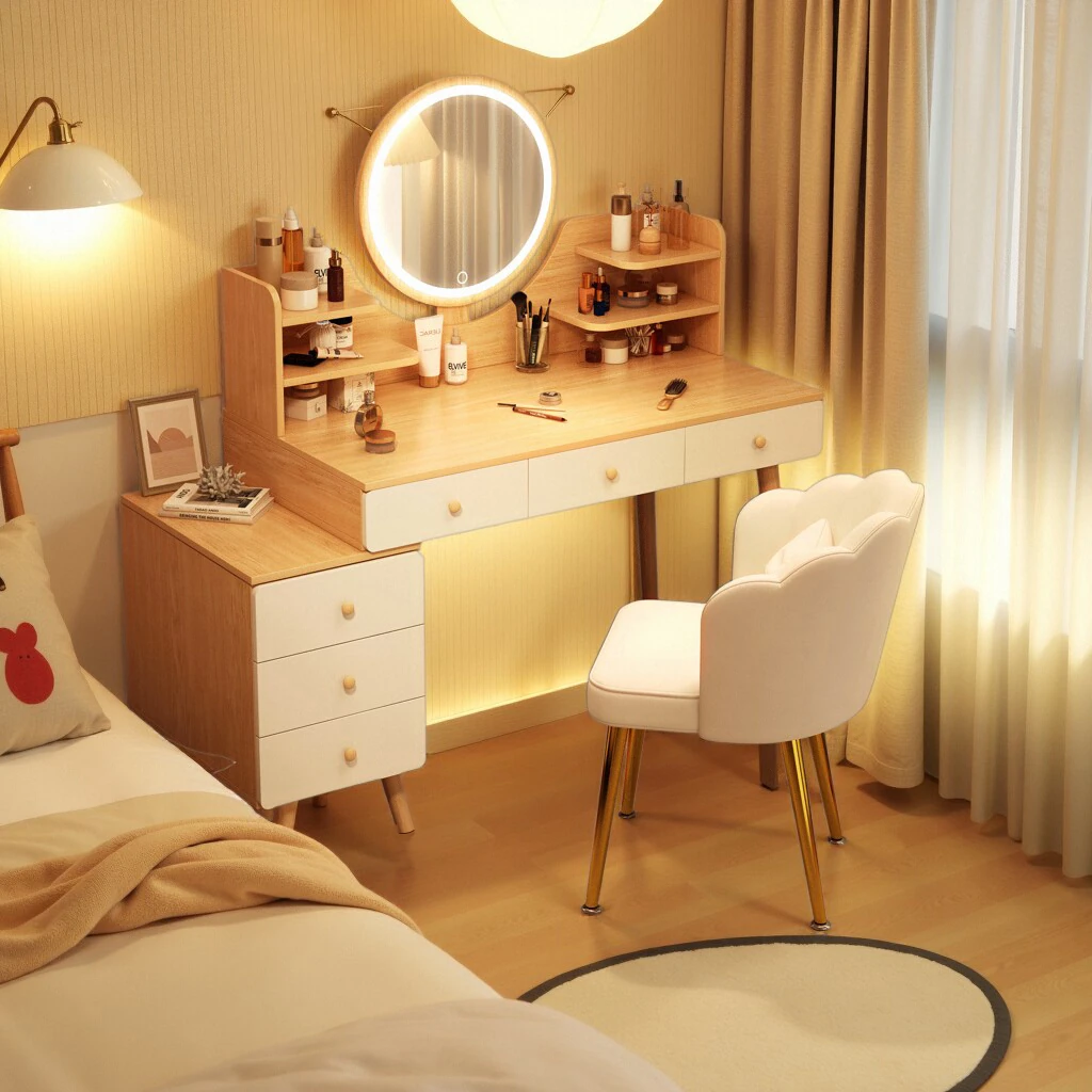 Modern Minimalist Vanity Table for Small Bedrooms - 2025 New Luxury Integrated Dresser and Nightstand Combo, Perfect for Chic Spaces