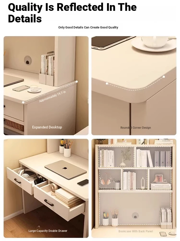 Compact Study Desk with Bookshelf for Students - Ideal for Home Use, Featuring Drawers and a Slim Design Perfect for Girls' Bedrooms, Wall-Mounted Computer Desk.