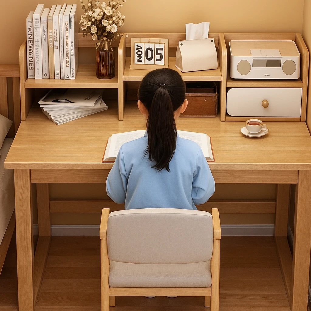 Compact Study Desk with Bookshelf - Ideal for Students and Home Use, Perfect for Writing and Working in Bedrooms or Home Offices