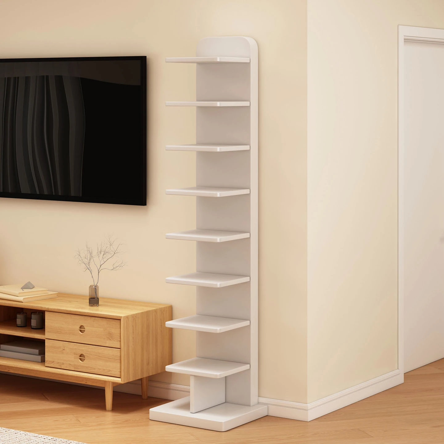 Multifunctional Wall-Mounted Floor Bookshelf - 5-Tier Narrow Display Rack for Living Room, Simple Vertical Storage Organizer, Perfect for Books and Decor