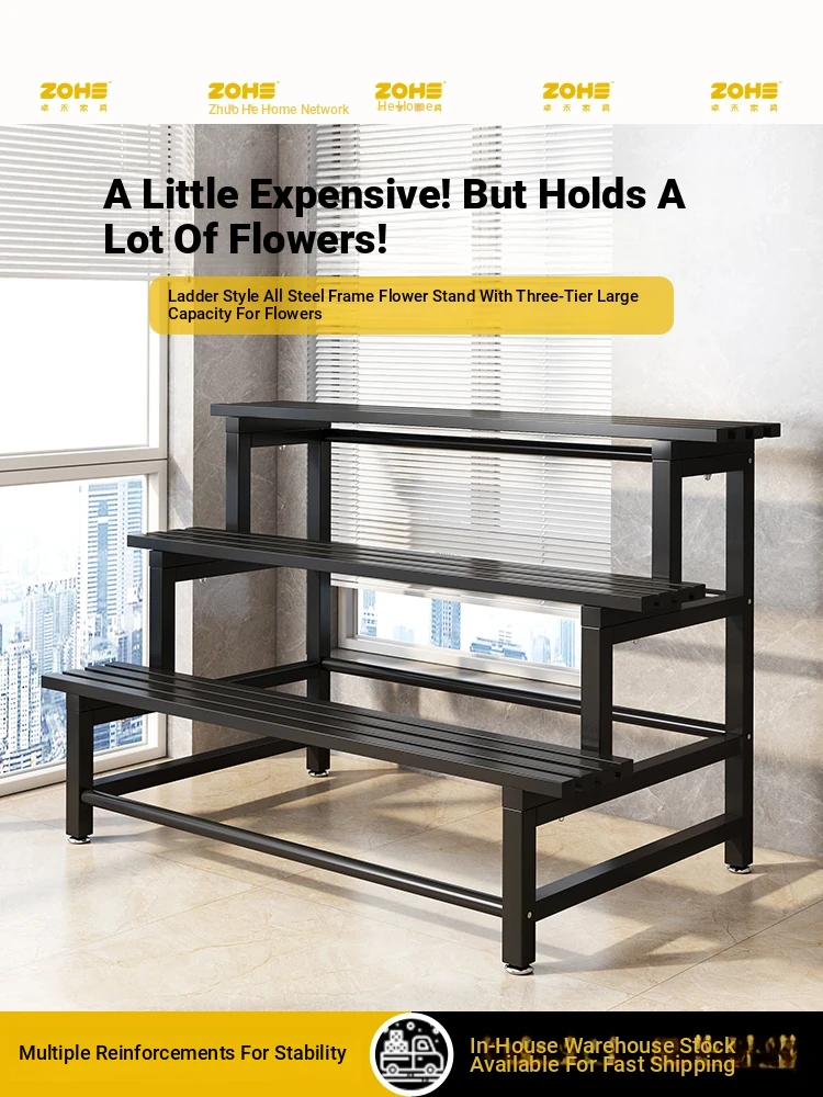 All-Steel Multi-Tiered Flower Rack - Outdoor Iron Ladder Plant Stand for Balconies and Living Rooms, Perfect for Displaying Potted Plants in 2025 Style!