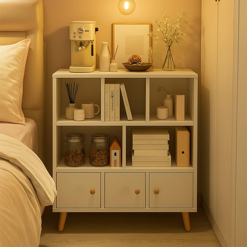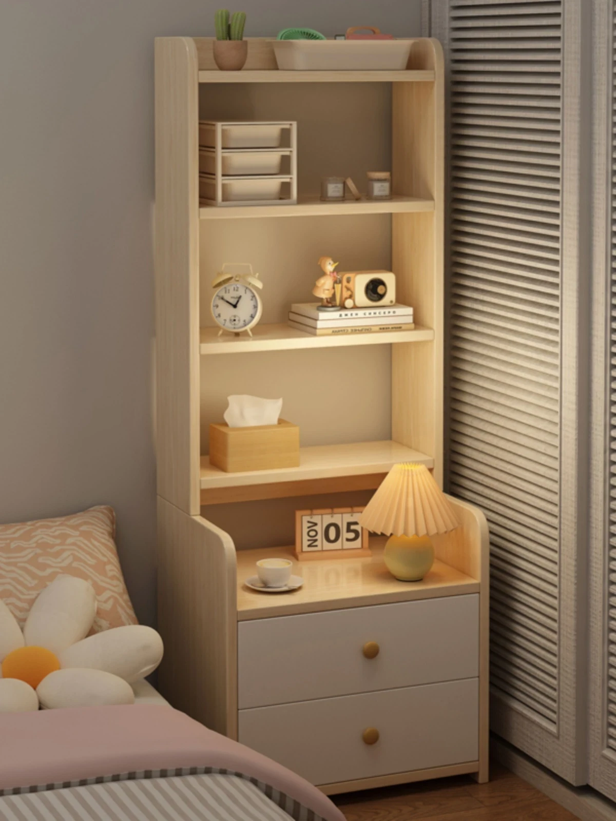 Elegant Bookshelf and Nightstand Combo - Stylish Storage Cabinet for Bedroom, Living Room, and Wall-Mounted Organization - Versatile Floor Bookshelf with Chic Design for Home Use