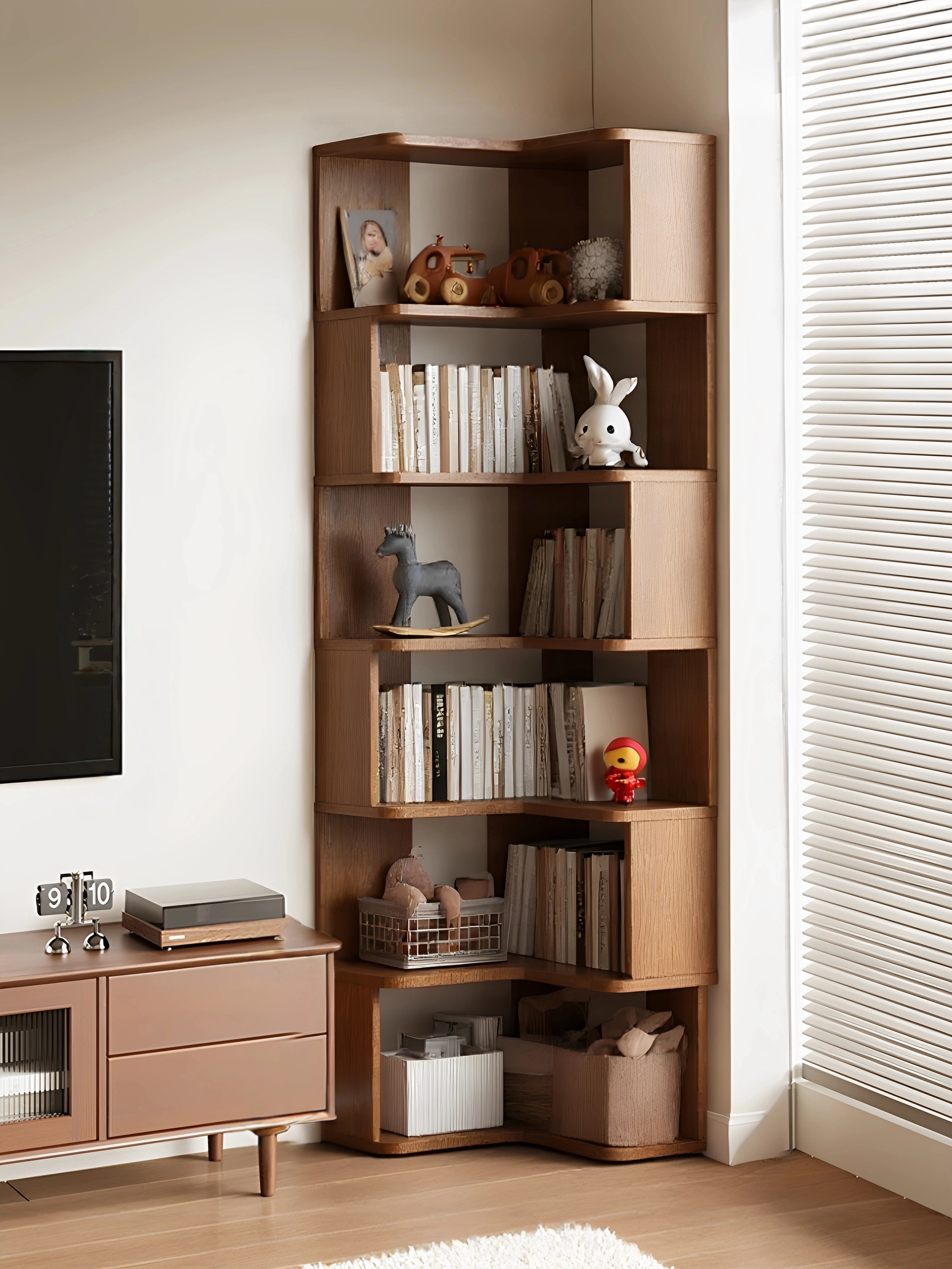 Stylish Floor-Standing Bookshelf and Display Cabinet - Space-Saving Corner Storage Rack for Living Room and Home Use, Ideal for Students and Organizing Your Essentials.