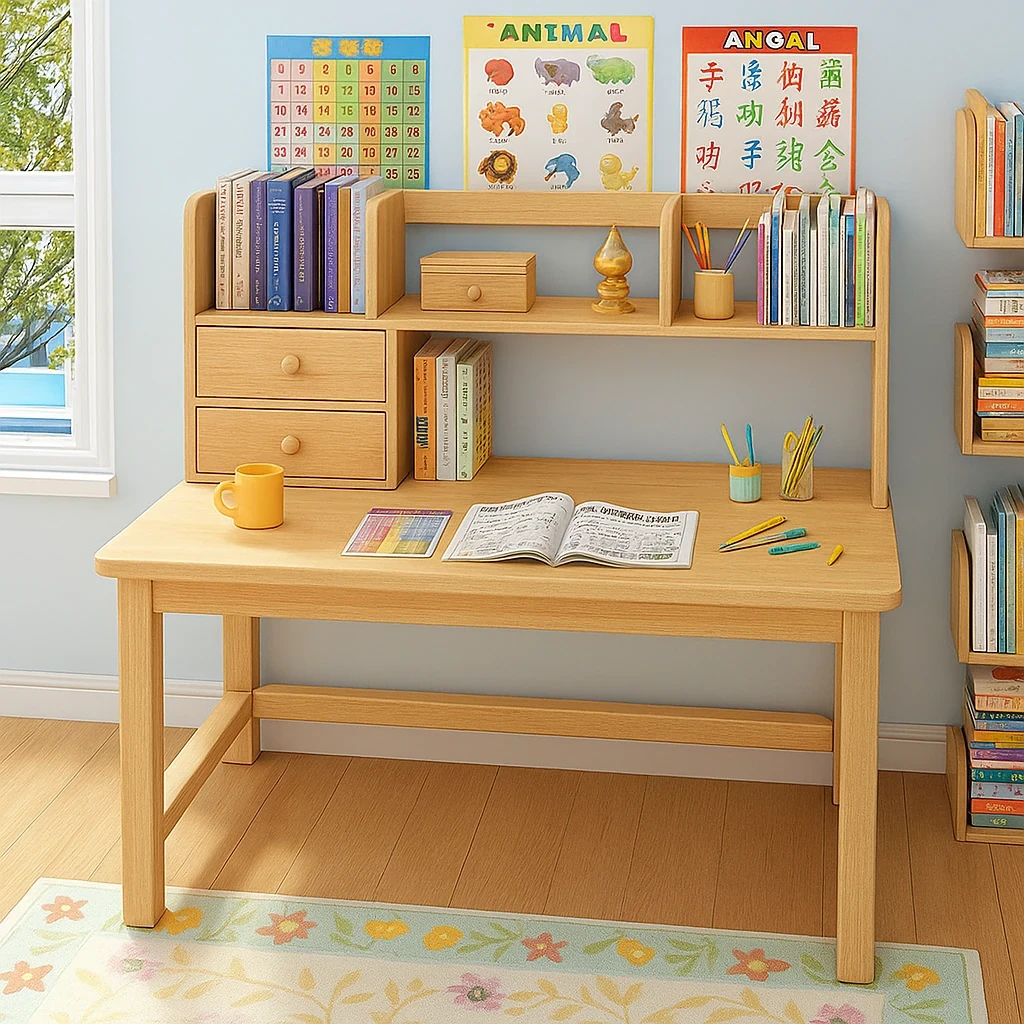 Multi-Functional Study Desk with Bookshelf for Kids and Teens - Ideal for Home Learning, Writing, and Computer Work - Equipped with Drawers for Organized Storage, Perfect for Bedrooms and Offices.