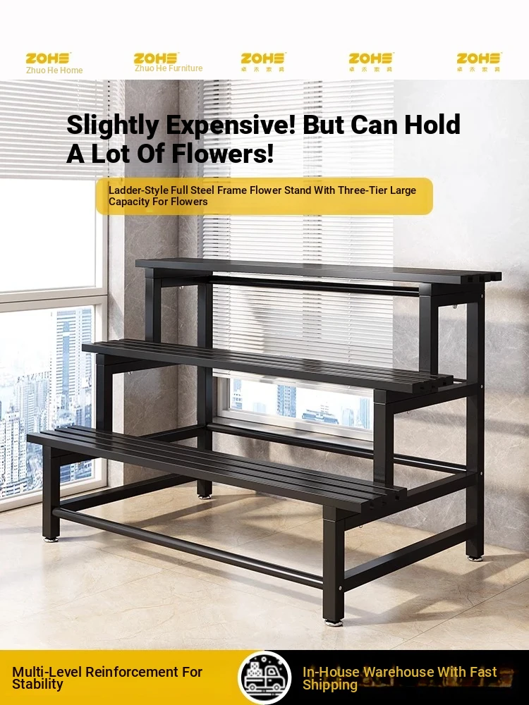 2025 Outdoor Iron Multi-Tier Plant Stand - Stylish Ladder Design for Balcony and Patio, Perfect for Living Room Floor Display of Potted Plants and Flowers