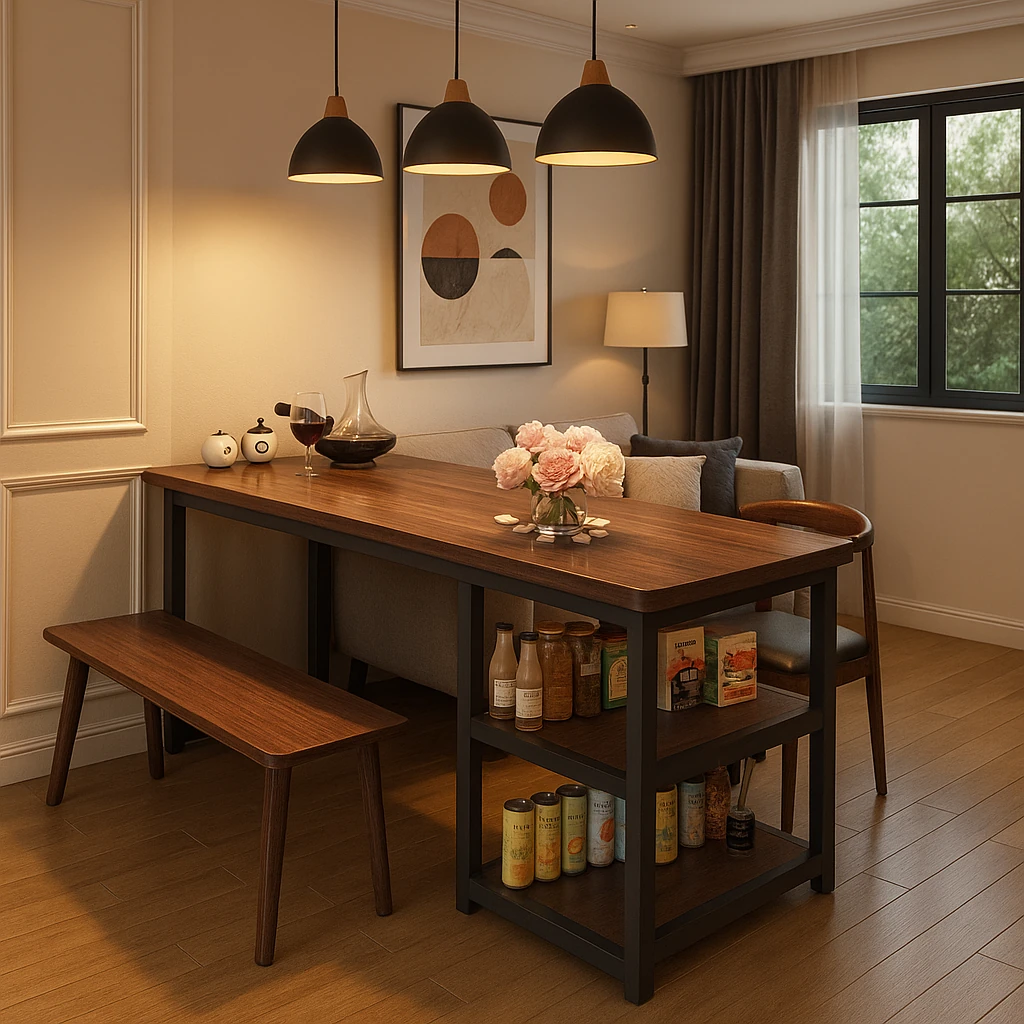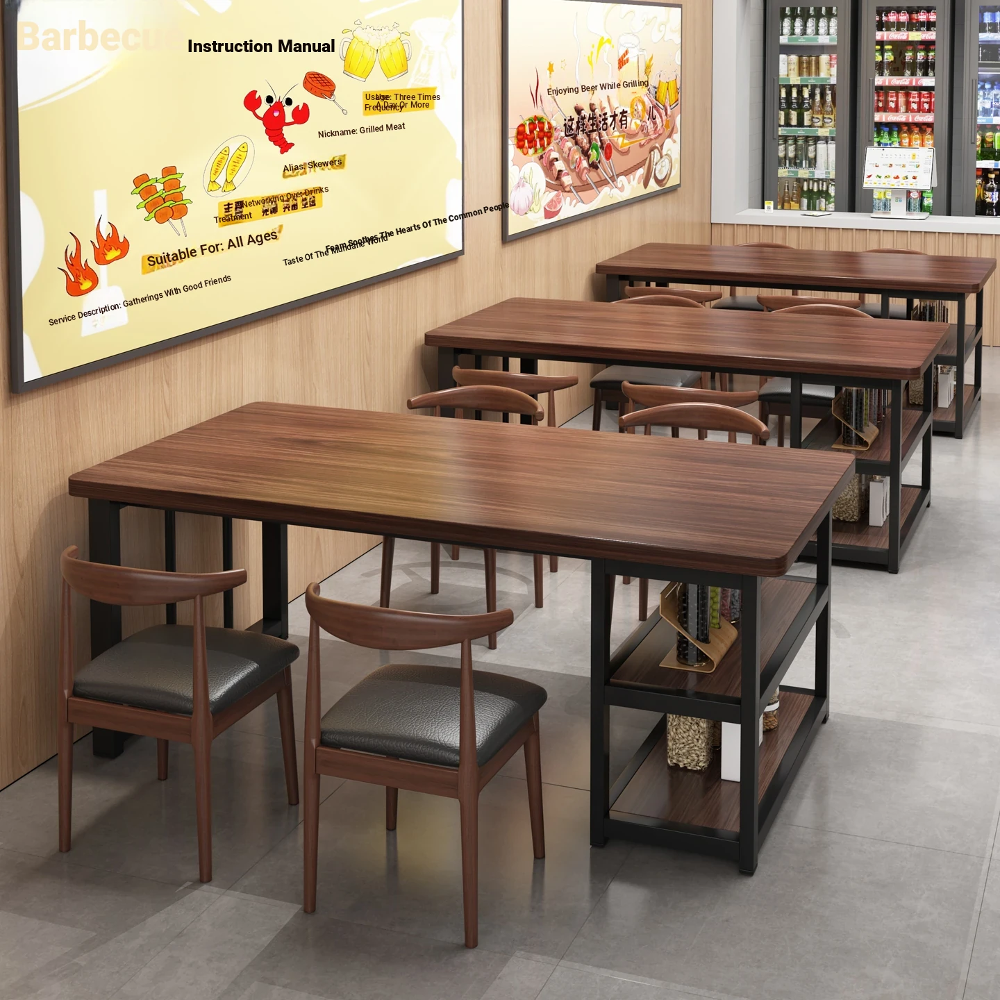 Versatile Rectangular Dining Table for Fast Food Restaurants and Snack Bars - Spacious Storage and Simplistic Design, Perfect for BBQ Shops and Casual Dining