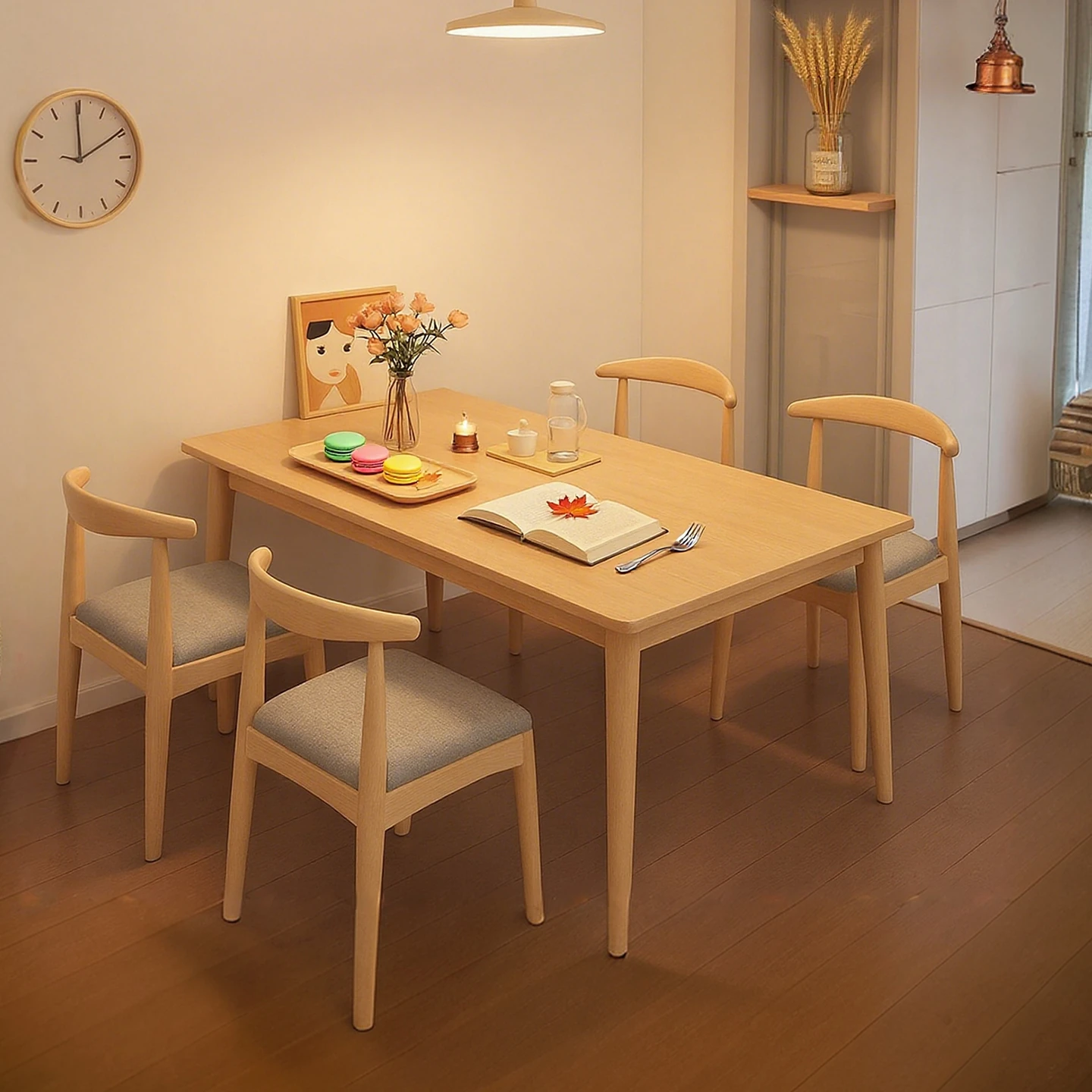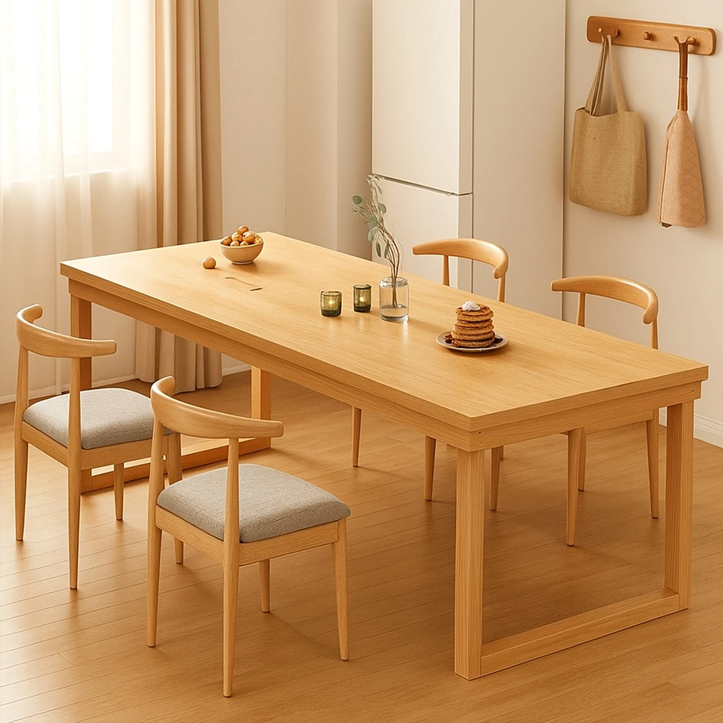 "Minimalist Rectangular Dining Table Set for Small Spaces - Natural Wood Design for Home or Commercial Use, Perfect for Dining and Entertaining"