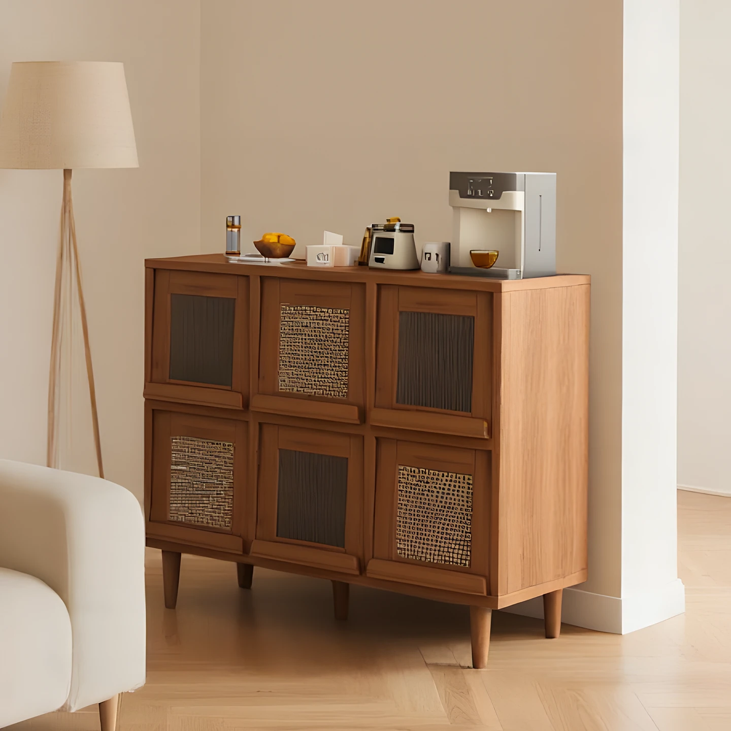 中古風の壁付けサイドキャビネット - おしゃれなティーキャビネット、収納力抜群の収納棚、キッチンやリビングにぴったりのドア付き書棚。あなたの空間をスタイリッシュに演出します!