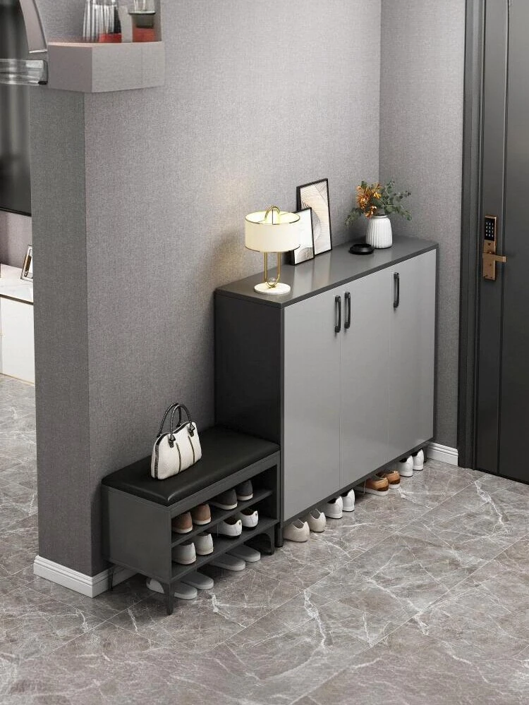 家庭用シューズベンチ兼シューズキャビネット - 玄関スペースを有効活用!座れる収納ボックスで、靴をスッキリ整理。シンプルでスタイリッシュなデザイン、入出時にも便利な一体型シューラック。