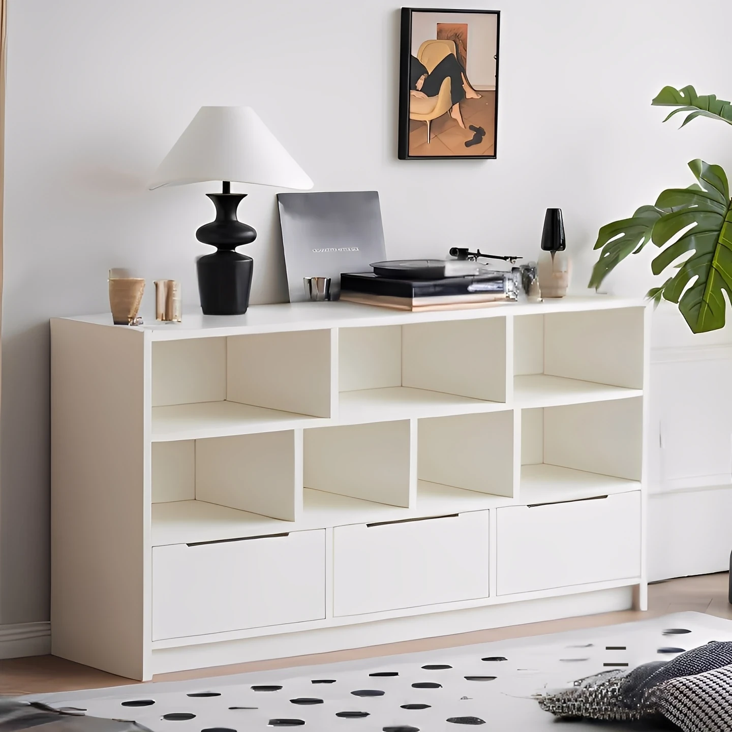 フレンチビンテージスタイルのフロア書棚&収納キャビネット - おしゃれな壁掛けグリッド収納、リビングルームや寝室に最適な家用収納家具!お部屋をスタイリッシュに演出し、スッキリとした空間を実現します。