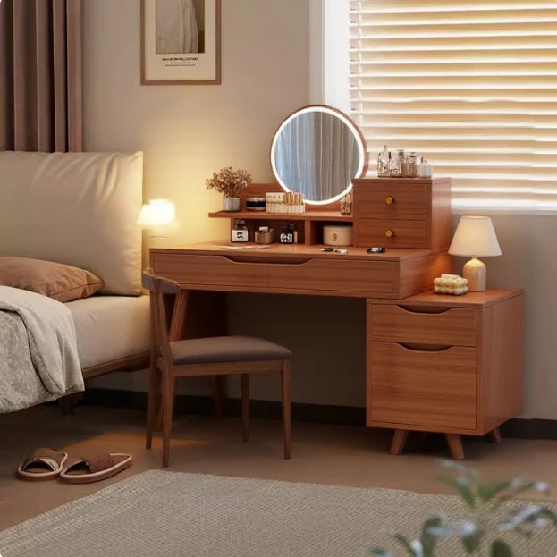 2025年新作!レトロなドレッサーとチェストが一体化したモダンシンプルなベッドサイドメイクアップデスク。あなたの寝室をスタイリッシュに演出する、魅力的な化粧台と鏡のセット!