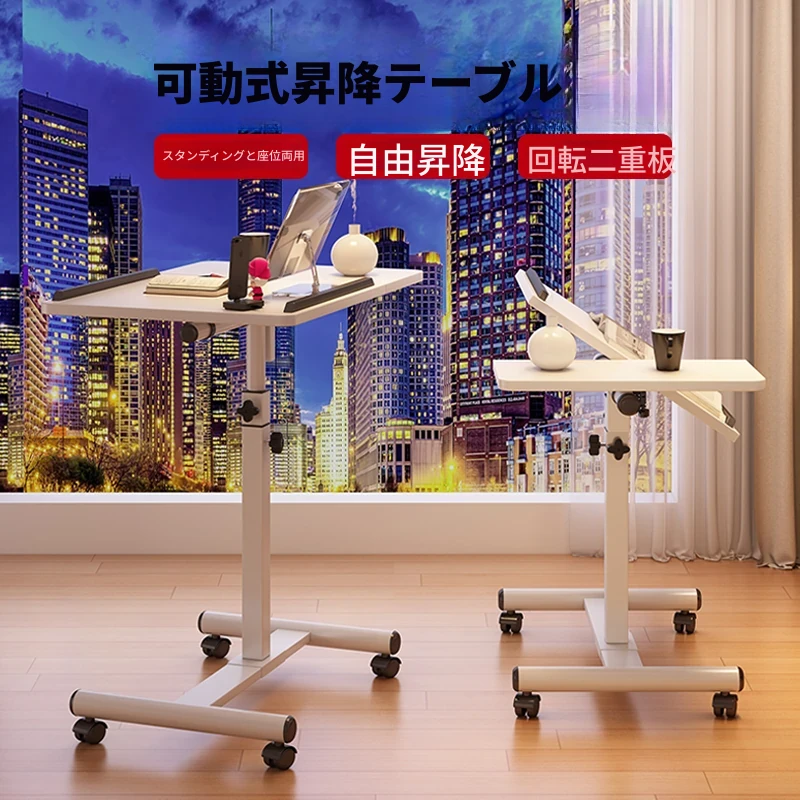昇降式パソコンデスク|寝室やリビングに最適な折りたたみ式学習デスク|ソファ横の移動可能なサイドテーブルで快適な作業空間を実現!