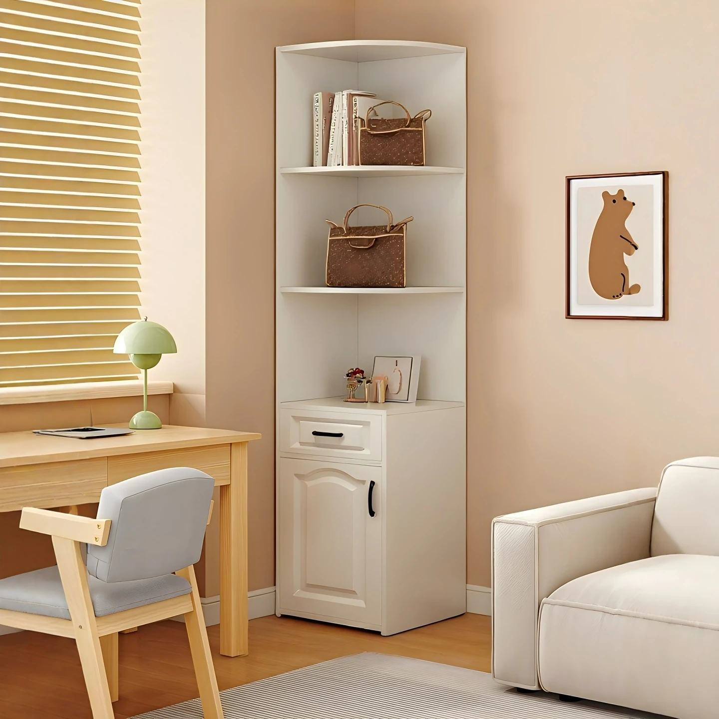 簡易書架一体型壁付け収納ラック!スタイリッシュなフロアディスプレイキャビネット、家にぴったりの三角形収納、寝室やコーナーにも最適な書棚です。収納力抜群で、お部屋をすっきりと整理整頓!