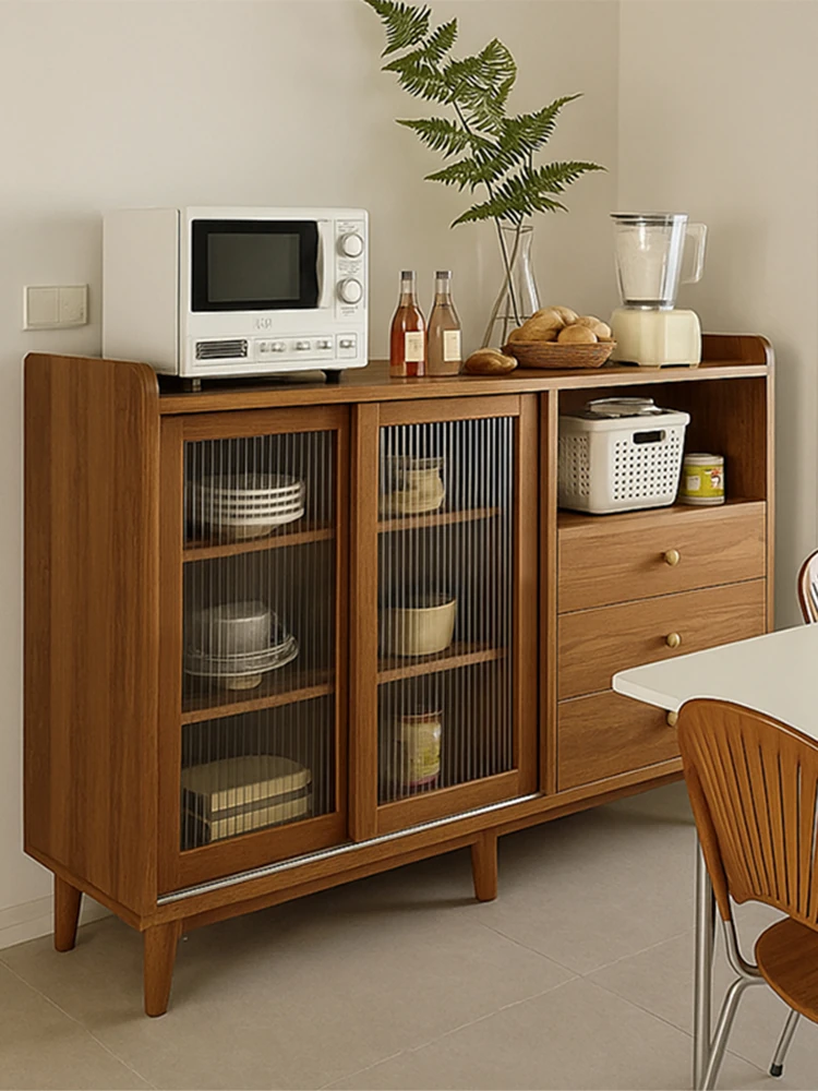 壁に寄せられる一体型リビングダイニング収納キャビネット - アンティーク風のティーサーバーと家庭用準備キャビネットで、すっきりとした収納を実現!おしゃれで機能的なアイテムで、あなたの生活空間を格上げ!
