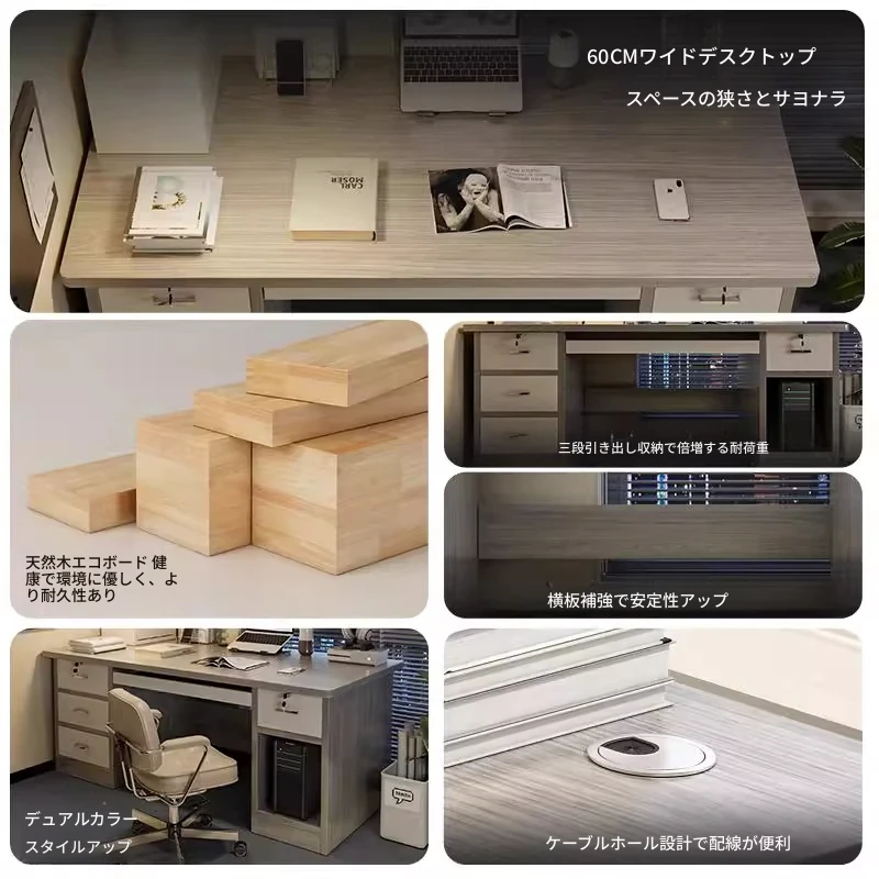 シンプルでモダンなデザインのデスク!引き出し付きのパソコンデスクは、オフィスや自宅での使用に最適。女性にぴったりの寝室用メイク台としても活躍!収納力抜群で、快適な作業空間を提供します。