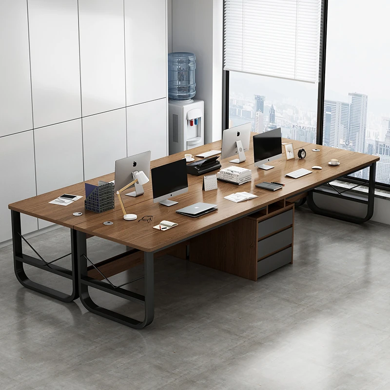 モダンなデザインの多人数用オフィスデスク - スタイリッシュな社員用デスクとチェアのコンビネーション、快適な作業環境を提供!
