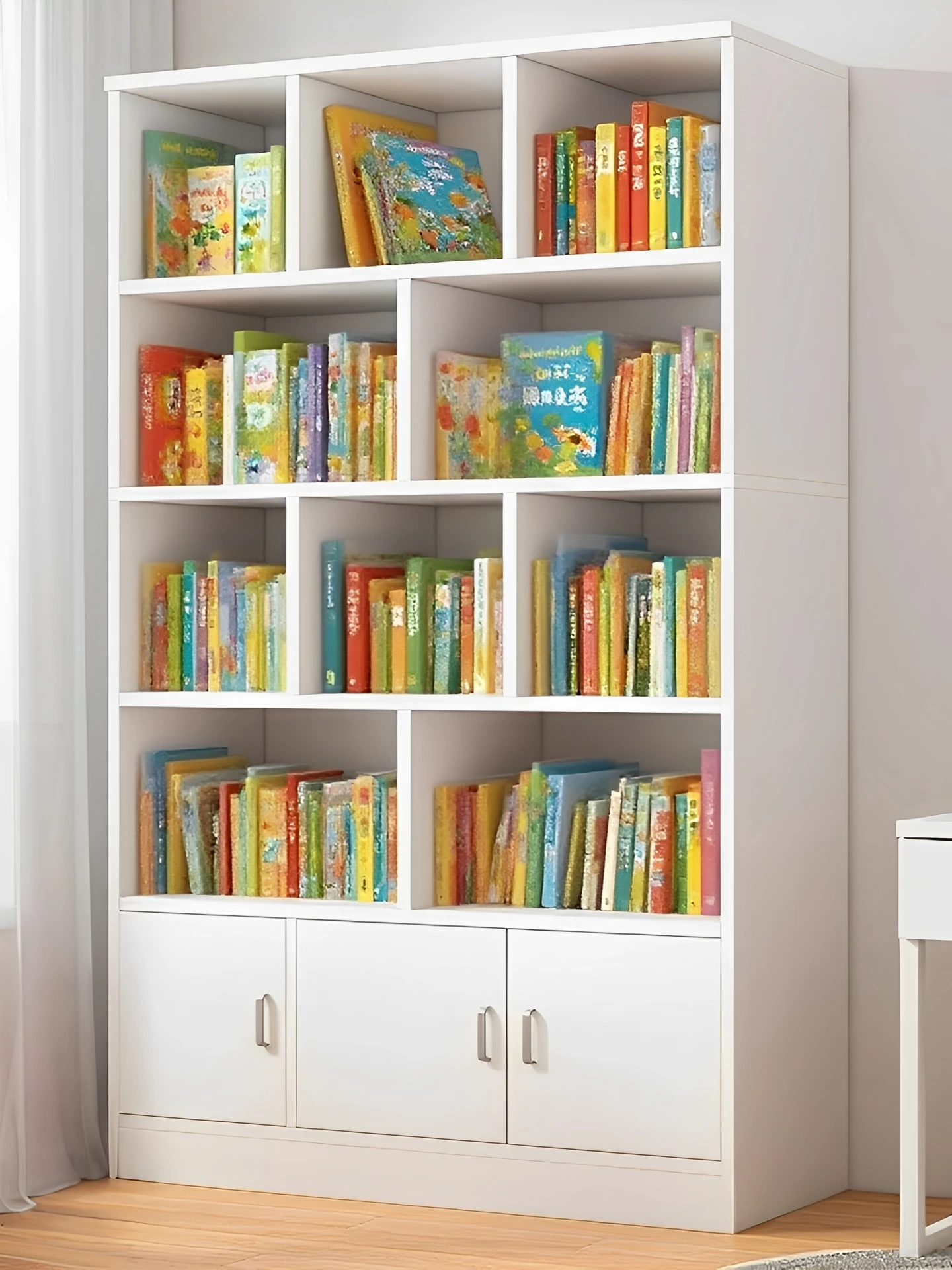 スタイリッシュなフロア本棚 - 学生や家庭に最適なシンプルな収納ラック。リビングや壁際にぴったりの収納スペースを提供し、整理整頓をサポートします!